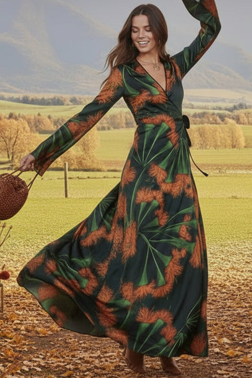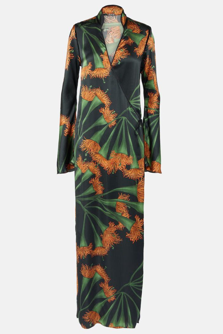 JOHANNA ORTIZ "Printed Silk Blend" Wrap Dress