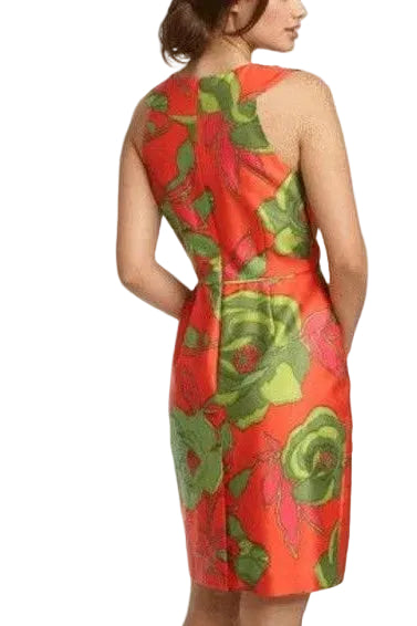 This knee-length dress by Kate Spade is crafted from a high-quality silk-cotton blend with a subtle sheen, featuring a vibrant floral print. Exquisite beading around the neckline adds sparkle and texture, while a concealed rear zipper ensures a clean, tailored finish. Perfectly suited for both formal and semi-formal occasions.