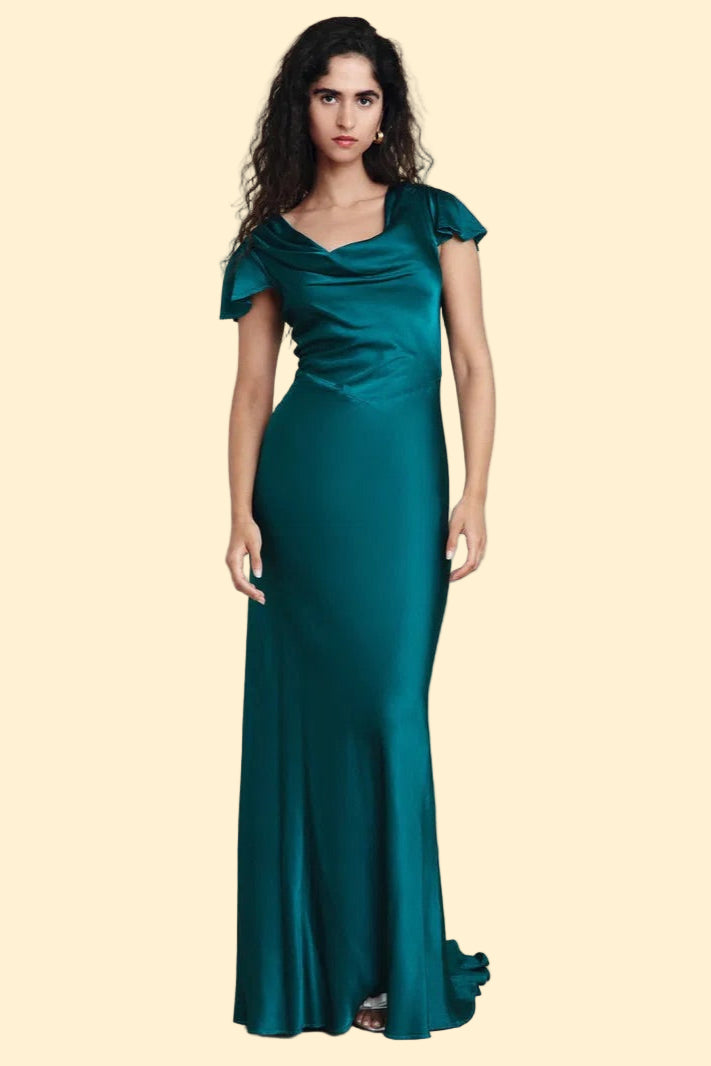 Skimming the silhouette and falling to the floor, this satin dress by Ghost is a muted, yet chic addition to your repertoire. With a soft, cowl neckline and cap sleeves, it is cut from a soft satin blend to give it a luxurious feel and would make the ideal choice for a wedding.