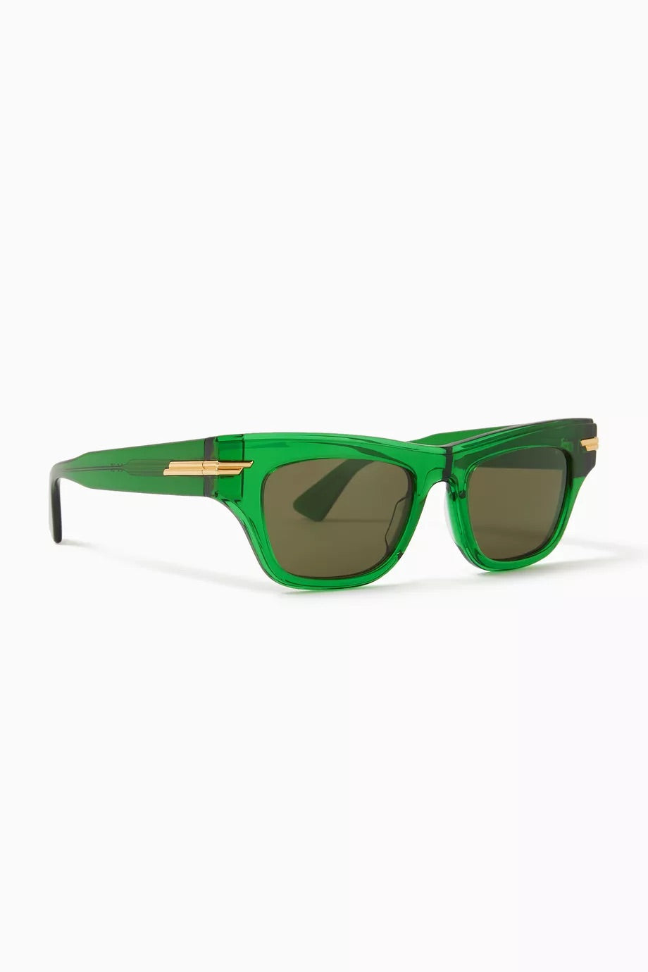 Vibrant hues and gold-tone details amplify the spotted Havana pattern of Bottega Veneta's latest sunglasses. Bound to offer the perfect pairing for balmy days, the shades are finished with tinted lenses that protect from sunrays. Code, BV1122S.