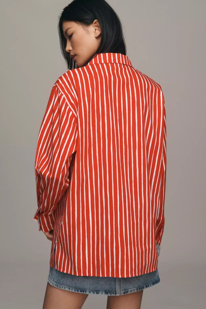 The Jokapoika 2026 (every boy) shirt, in the Piccolo pattern is one of most-loved classics. Designed by Vuokko Eskolin-Nurmesniemi in 1956, .It can worn in countless different ways . Button-up shirt has a relaxed, straight fit and it features the Piccolo pattern, which is printed in Helsinki. The shirt has a pointed collar, a metal button closure, and a chest pocket. The cuffed sleeves have slits and metal button closures. There are small side slits at the hem .The Jokapoika 2026 shirt is made of a new heavier cotton fabric.