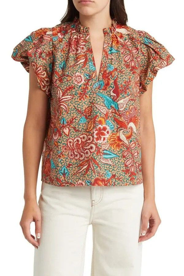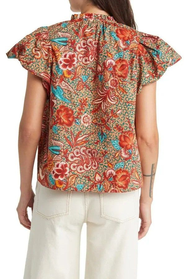 ULLA JOHNSON "Evelyn" Floral Print Puff Sleeve Top