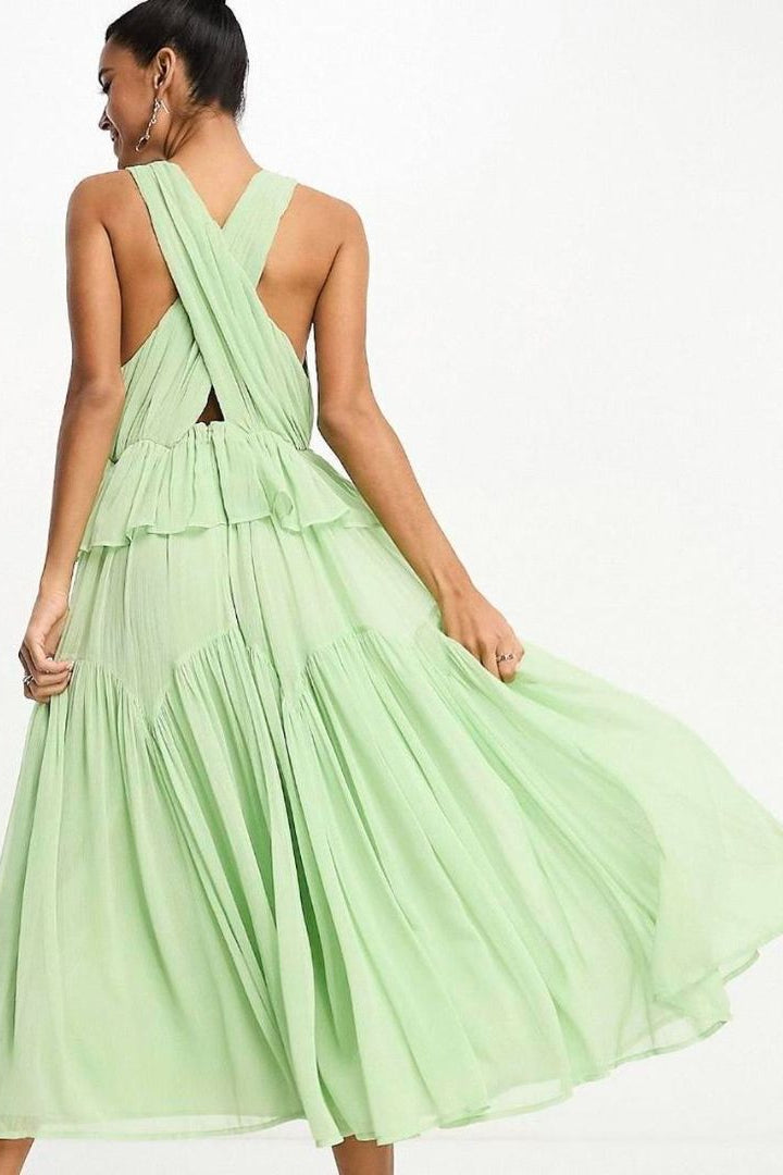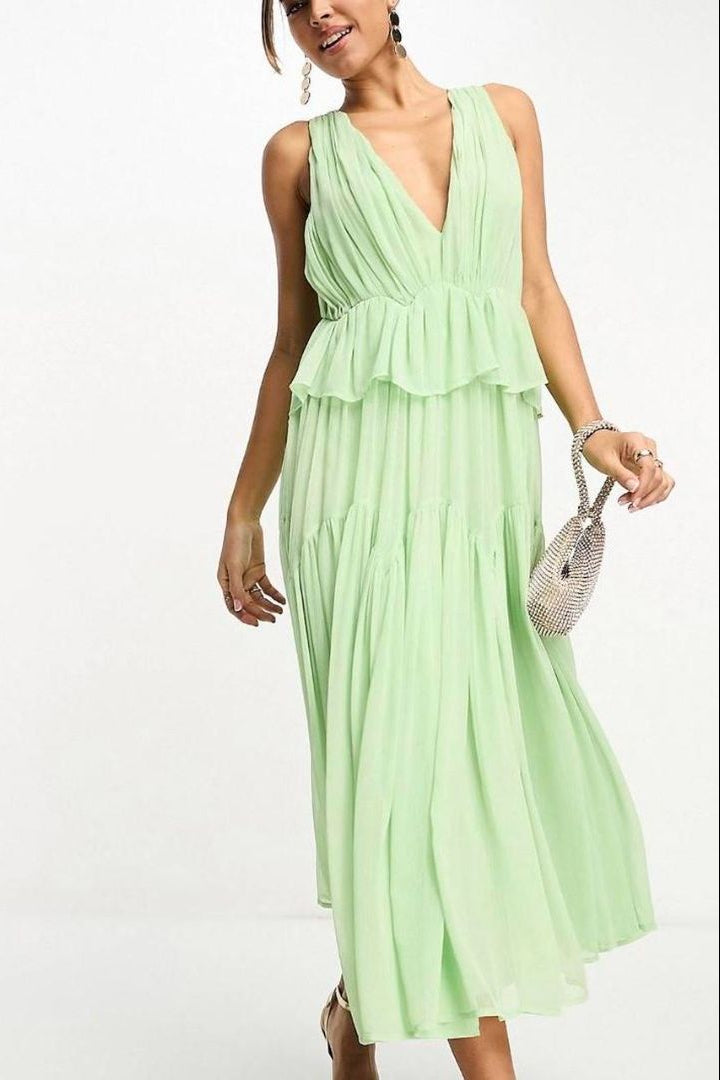 ASOS "Plunge Pleated" Tiered Maxi Dress