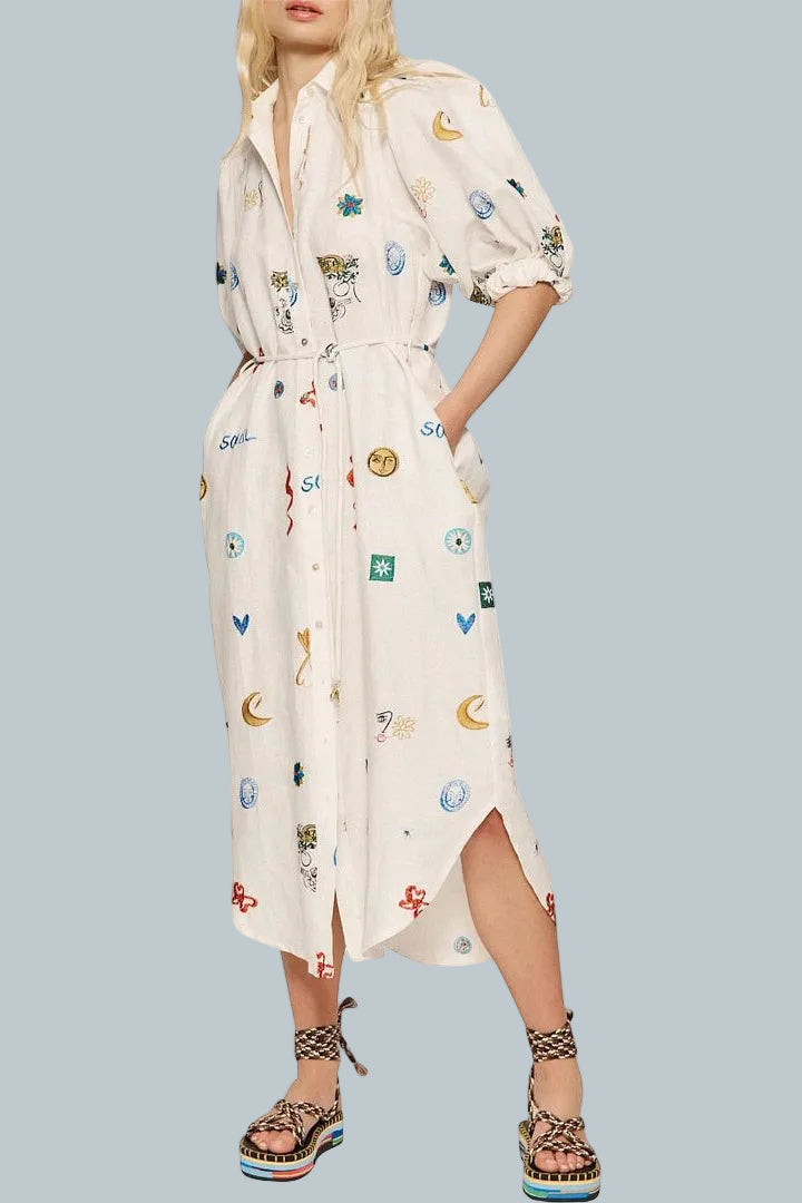 ALEMAIS "Soleil Embroidered" Shirt Dress